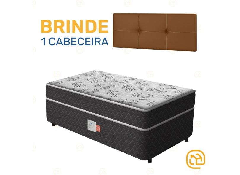 Cama Box Conjugada Solteira Ortopédica D28 Unique + Cabeceira Painel Iris Marrom