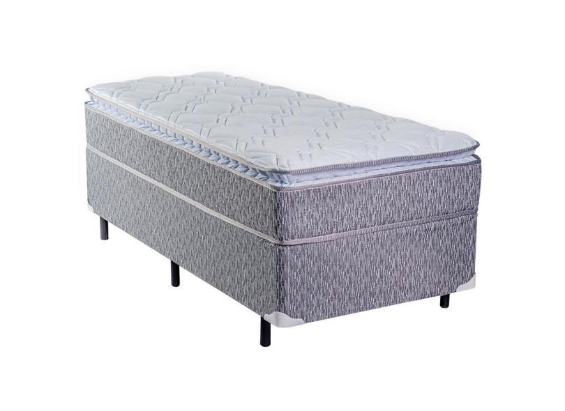 Cama Box de Solteiro Luckspuma Valência Comfort com Molas Ensacadas e Pillow Top 64x88x188cm - Cinza Rústico/Branco