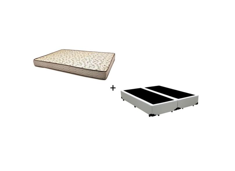 Cama Box King 193 Tecido Sintético Branco Com Colchão 193 Flórida Bello Box - 100% Espuma - D26 Cinza