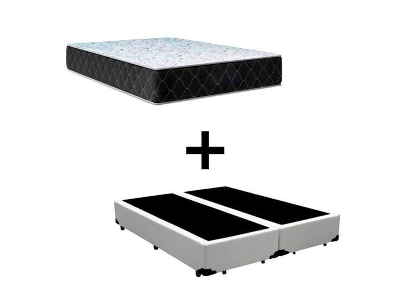 Cama Box King 193 Tecido Sintético Branco Com Colchão Marrocos - Poliéster - Espuma D33 30cm