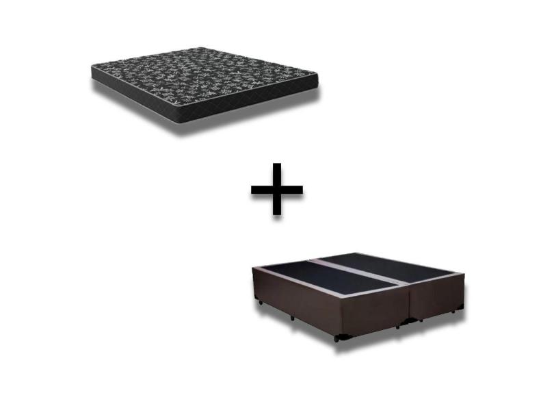 Cama Box King 193 Tecido Sintetico Marrom Com Colchão Espuma D23 - Tampo Preto 12cm