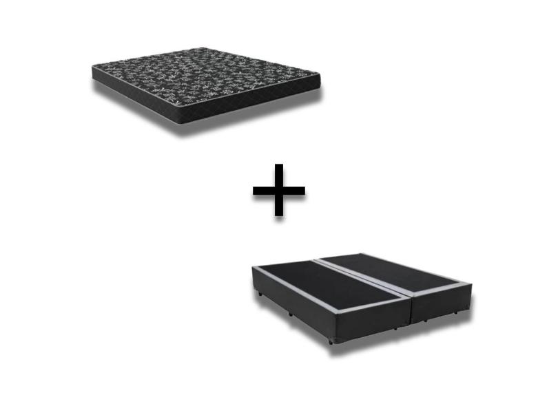 Cama Box King 193 Tecido Sintetico Preto Com Colchão Espuma D20 - Tampo Preto 12 cm