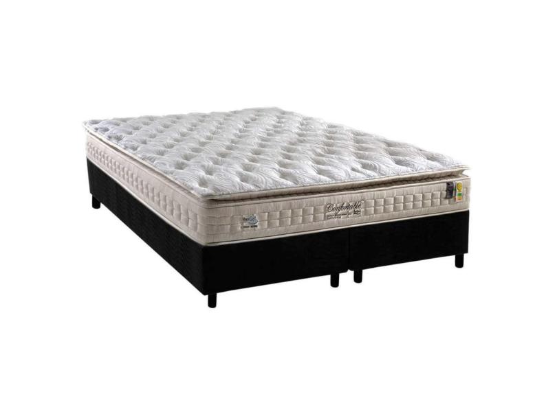 Cama Box King: Colchão Molas Anjos MasterPocket Ensacadas Confortable + Base CRC Suede Preto(193x203)