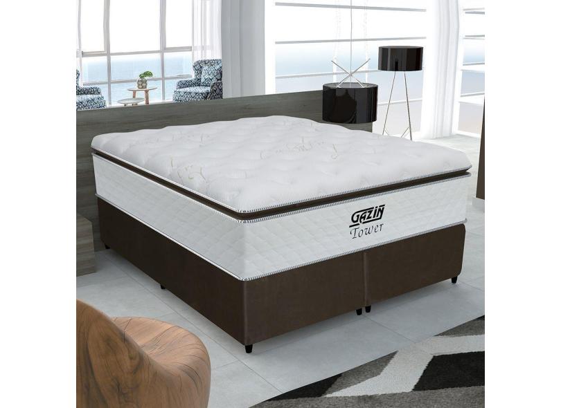 Cama Box King Colchão Molas Ensacadas Tower 193x203x72cm Branco / Marrom