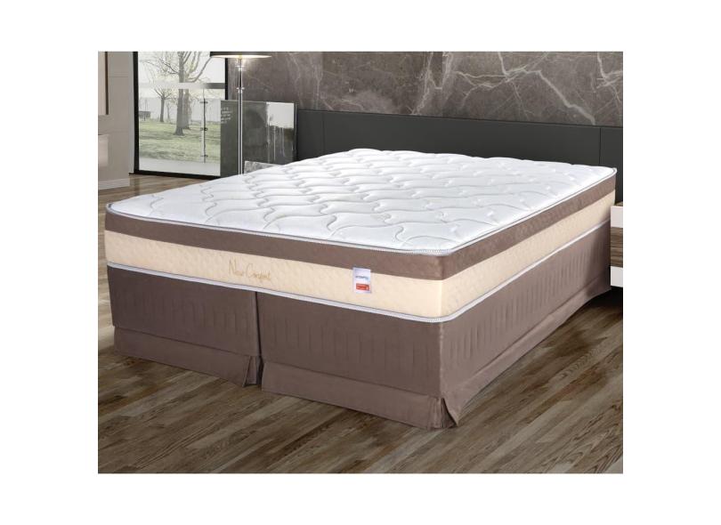 Cama Box King Cristalflex New Confort 193x203x65cm Molas Ensacadas Branco Marrom