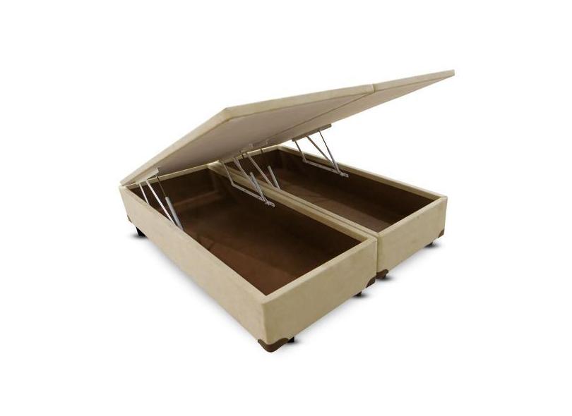 Cama Box King Size Californiano Bipartido Camurça Bege Baú Pistão Fron