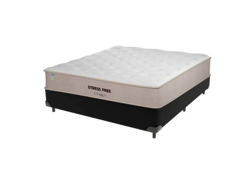 Cama Box Preto e Colchão Casal StressFree espuma D28 Unique