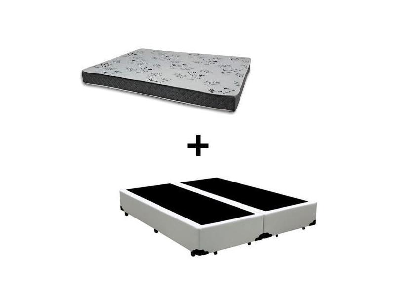Cama Box Queen 158 Tecido Sintético Branco Com Colchão Miller Bello Bo