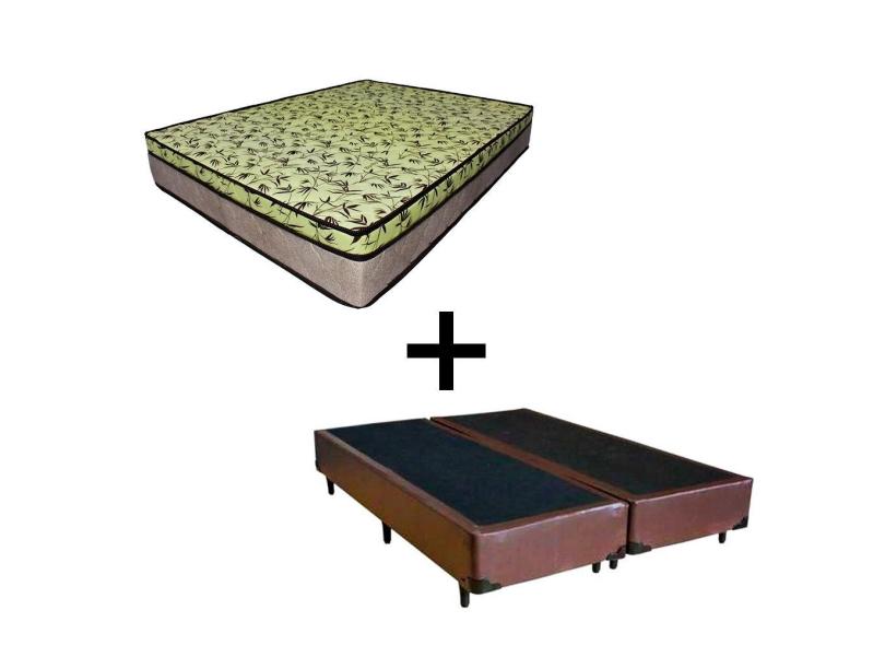 Cama Box Queen 158 Tecido Sintético Marrom com Colchão Espuma D33 Tokio Bege - Bello Box - 65x158x198