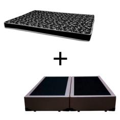 Cama Box Queen 158 Tecido Sintético Marrom Com Colchão Hamburgo Bello Box - 100% Espuma - D28 Preto 54x158x198