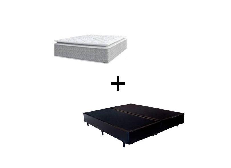 Cama Box Queen 158 Tecido Sintético Preto Com Colchão Nazar Molas Ensacadas com Pillow Top - Bello Box - Conforto (Espuma da Nasa) Viscoeslástico D33 Cinza