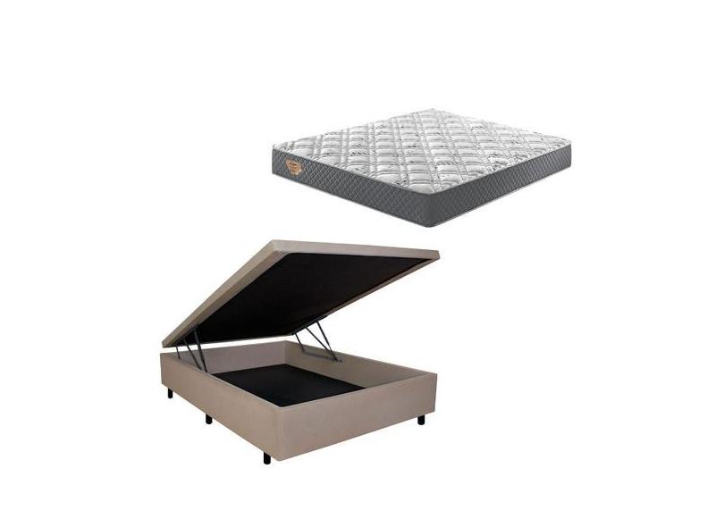 Cama Box Queen Baú Resistente Bege Com Colchão Adapto Molas Ensacadas
