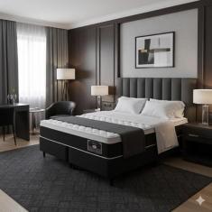 Cama Box Queen Castor Black E White Air One Face D45 158X198x50 + Box