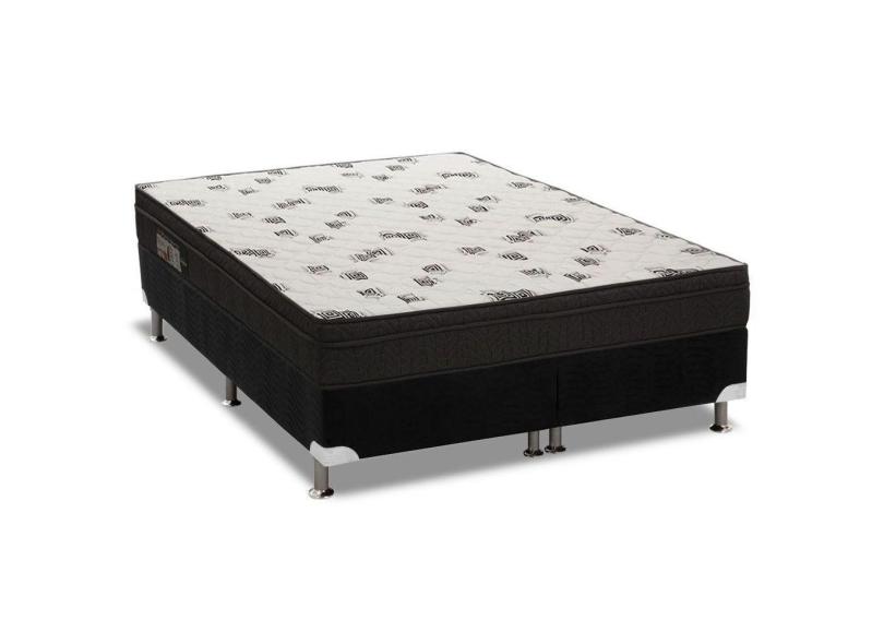 Cama Box Queen: Colchão Espuma Ortobom D45 Light + Base Crc Suede Black(158X198)