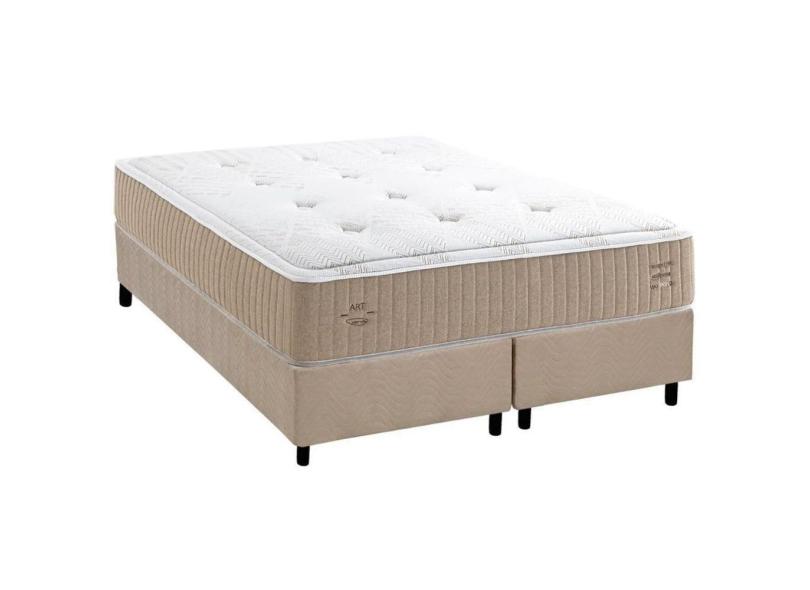 Cama Box Queen: Colchão Molas Bonnel Maxspring C1631 Base Crc Suede Clean(158x198x32)