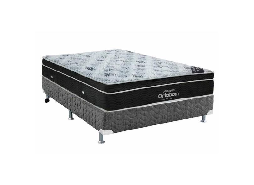 Cama Box Queen: Colchão Molas Bonnel Ortobom Nanolastic Exclusive + Base crc Suede Gray(158x198)