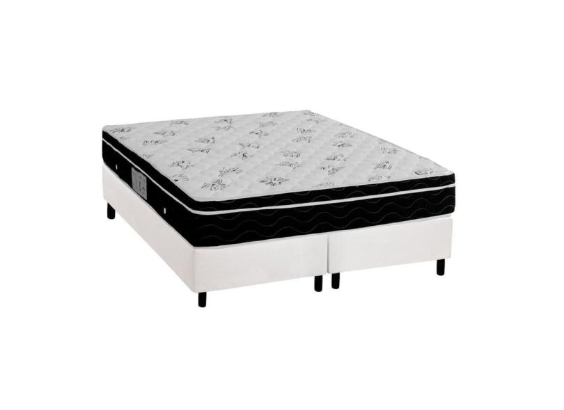 Cama Box Queen: Colchão Molas Ortobom Nanolastic Physical Spring + Base CRC Courano Branco(158x198)