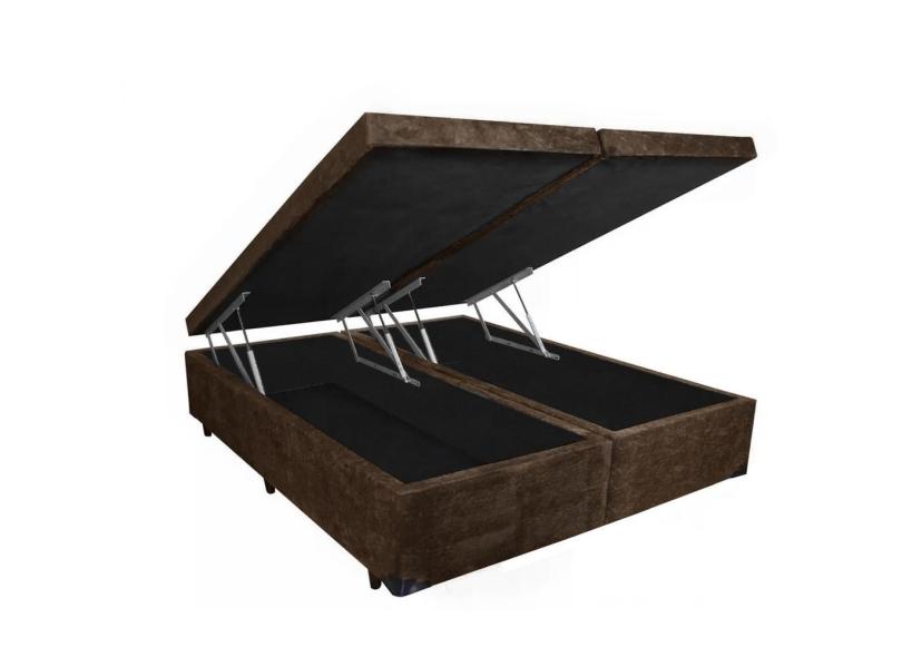 O menor preço encontrado no Brasil para Cama Box Queen Size Com Baú Pistão A gás Black Suede Marrom Bipartido - 158x198 atualmente é R$ 840,00.