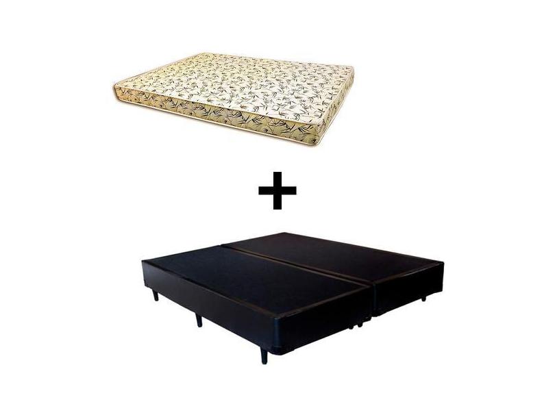 Cama Box Queen - Tecido Sintético Preto Com Colchão Austrália Bello Bo
