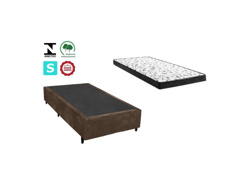 Cama Box Solteirão Marrom Suede + Colchão Espuma D20 110x188x10