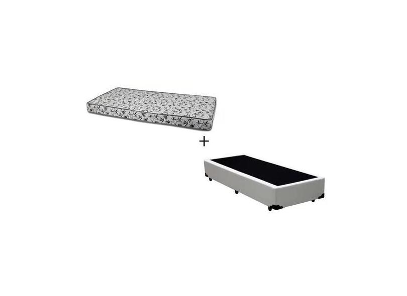 Cama Box Solteiro 88 Tecido Sintético Branco Com Colchão Nápoles Espum