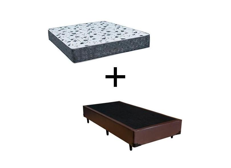 Cama Box Solteiro 88 Tecido Sintético Marrom Com Colchão Alegro Bello Box Espuma D28 Cinza 57x88x188