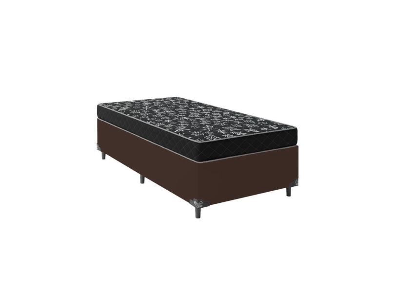 Cama Box Solteiro 88 Tecido Sintético Marrom com Colchão Espuma D20 - Tampo Preto 12cm