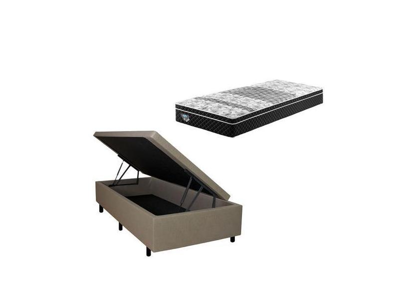 Cama Box Solteiro Baú Bege + Colchão Gran Sleep Molas Verticoil 88X188