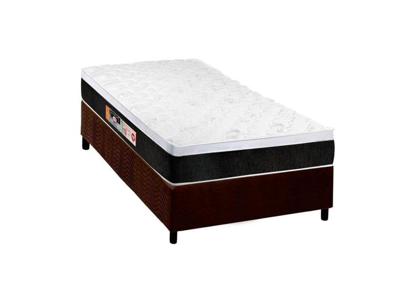 Cama Box Solteiro: Colchão Espuma Castor D45 Black e White air + Base crc Suede Brown(88x188)