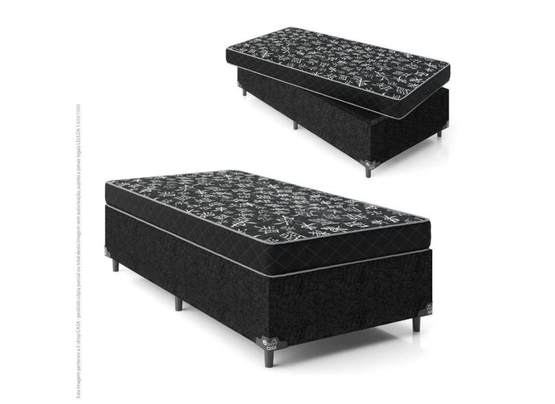Cama Box Solteiro + Colchão Espuma D20 - 51x88x188cm - Suede Preto