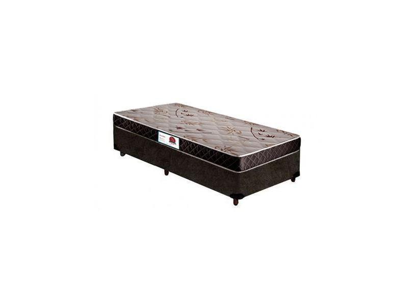 Cama Box Solteiro Colchão Espuma D33 Bordado + Box Suede Marrom RC Son
