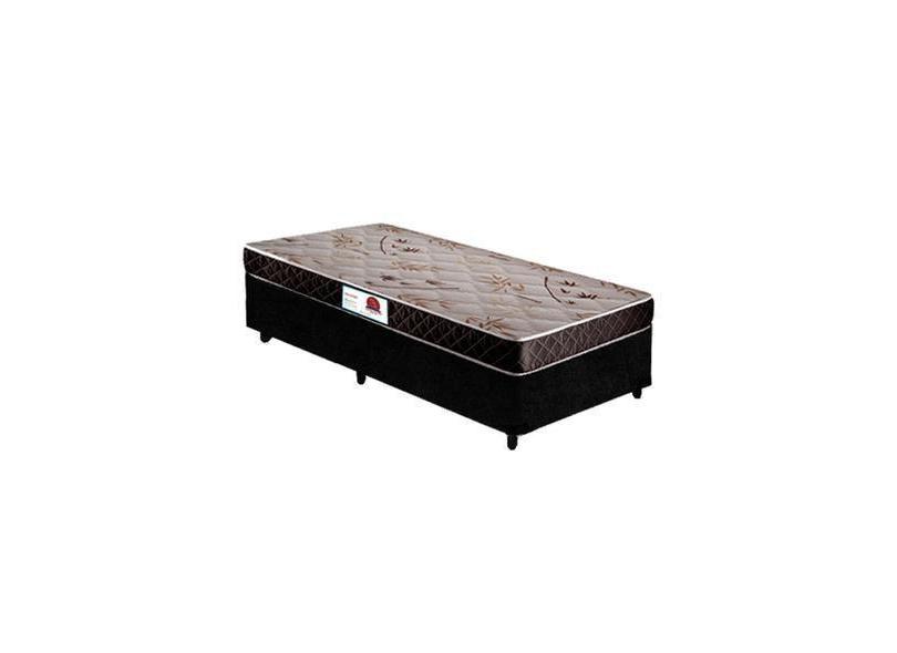 Cama Box Solteiro Colchão Espuma D33 Bordado + Box Suede Preto RC Sono