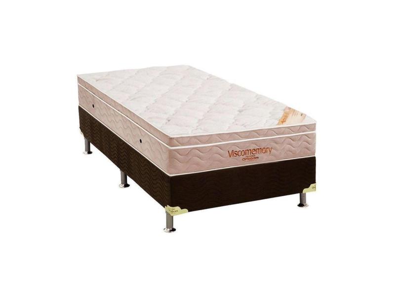 Cama Box Solteiro: Colchão Espuma Ortobom Apollo Viscomemory + Box Suede Brown(88X188)