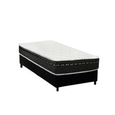 Cama Box Solteiro: Colchão Molas Bonnel Luckspuma Eagle Spring + Base CRC Suede Black(88x188)