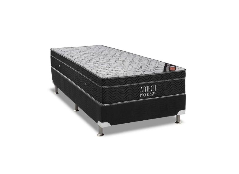 Cama Box Solteiro: Colchão Molas Bonnel Ortobom Nanolastic Airtech Progressive + Base Crc Suede Black(88X188)