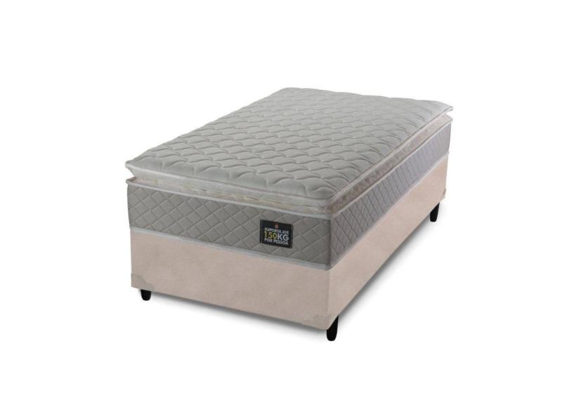 Cama Box Solteiro + Colchão Strong D45 One Face Bege 88x188x63cm - Suporta até 150Kg + 1 Trav