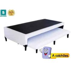 O menor preço encontrado no Brasil para Cama Box Solteiro com Auxiliar Espuma Sintético Branco 50x78x188 atualmente é R$ 610,90.