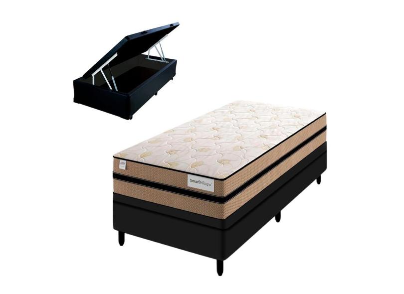 O menor preço encontrado no Brasil para Cama Box Solteiro com Baú Preto e Colchão Smart Milano Plumatex atualmente é R$ 1.610,67.