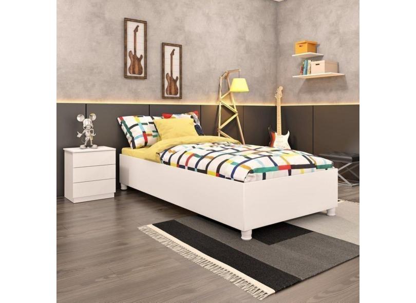 Cama Box Solteiro Mônaco e Mesa de Cabeceira Veronna Neve