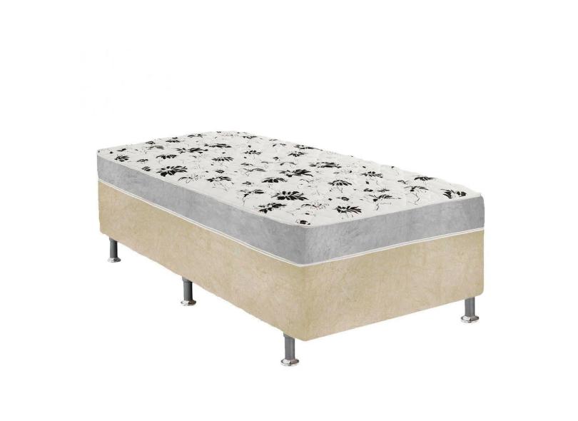 Cama Box Solteiro Suede Bege + Colchão Solteiro Suede Cinza Orto Molas Bonnel 88x188x55