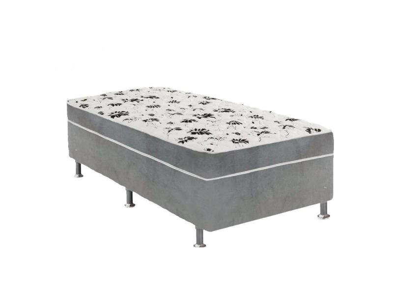 Cama Box Solteiro Suede Cinza + Colchão Solteiro Suede Cinza Orto Molas Ensacada 88x188x55
