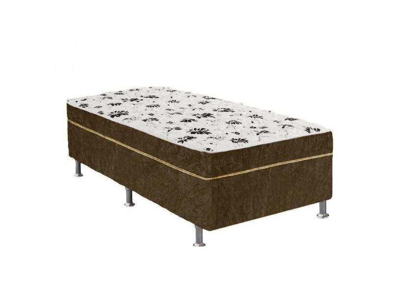 Cama Box Solteiro Suede Marrom + Colchão Solteiro Suede Marrom Orto Molas Bonnel 88x188x55
