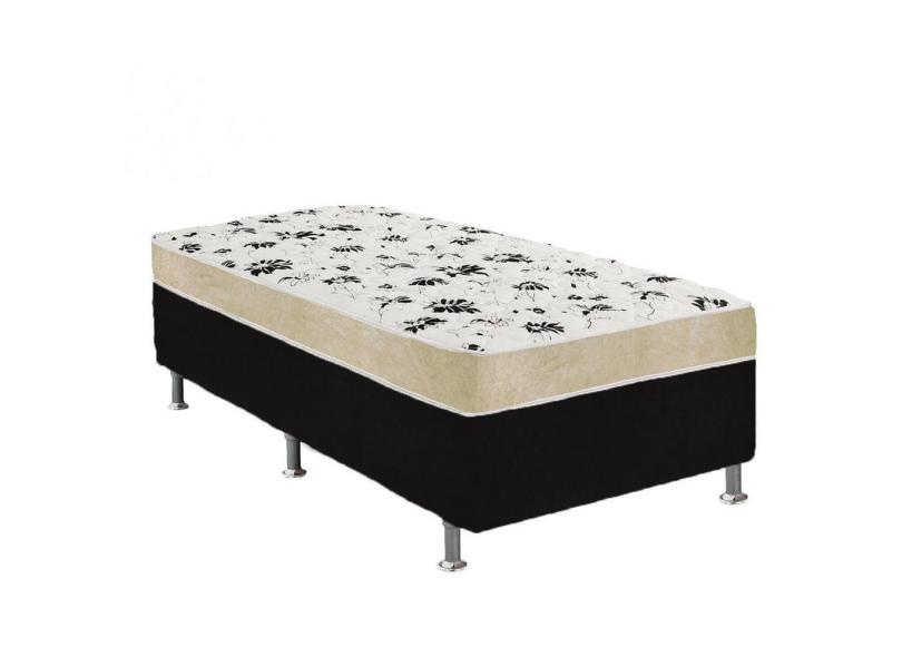 Cama Box Solteiro Suede Preto + Colchão Solteiro Suede Bege Orto Molas Ensacada 88x188x55