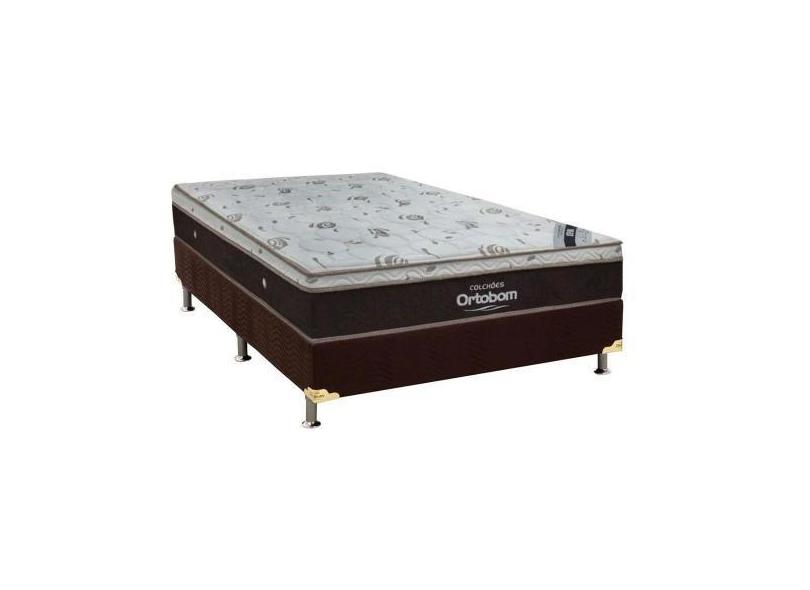 Cama Box Super King Sleep King + Base Camurça Marrom 193X203x55 Ortobo