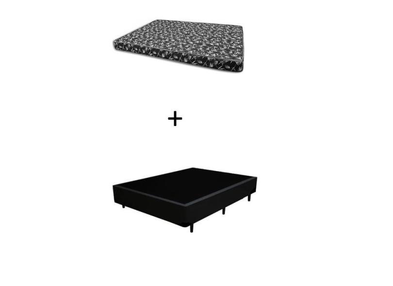 Cama Box Viúva 128 Bello Box - Tecido Sintético Preto com Colchão New York Preto D28 - 100% Espuma - 54x128x188