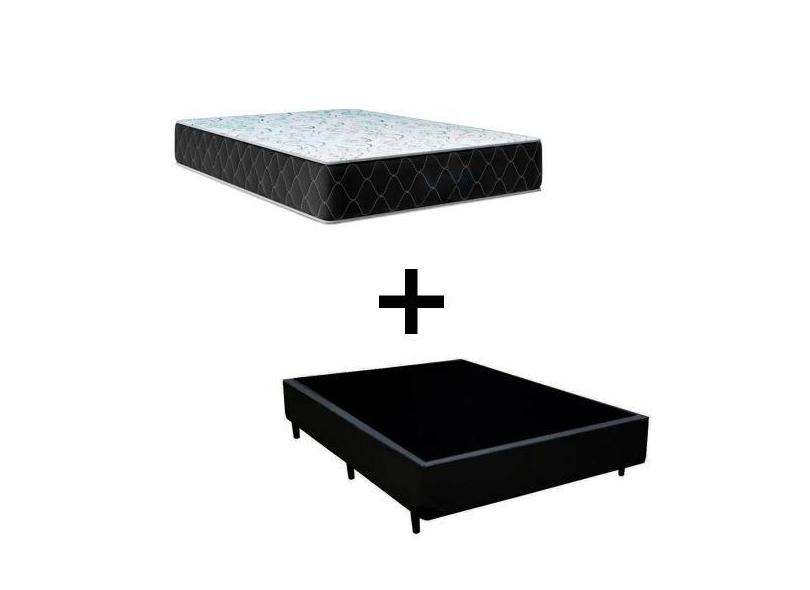 Cama Box Viúva 128 Tecido Sintético Preto Com Colchão Marrocos - Polié