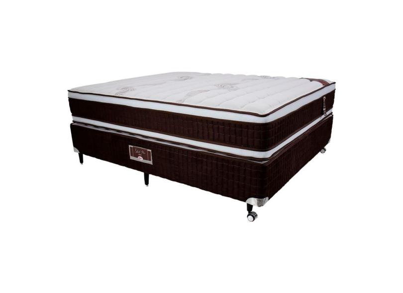 Cama Box Viúva Castor Selle P Double com Revestimento em Tecido Suede + Colchão com Molejo Tecnopedic, Euro Pillow 34x128x198cm – Marrom e Bege