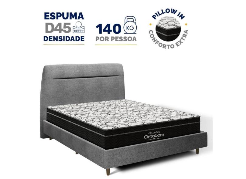 O menor preço encontrado no Brasil para Cama + Cabeceira Genebra Bouclé com Colchão de Espuma D45 Ortobom Airtech Ortopillow 150 Queen 158cm atualmente é R$ 1.944,72.