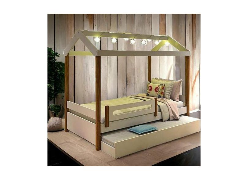Cama Casa Elisa Branco/Mel C/ Led E Aux. - Movelaria