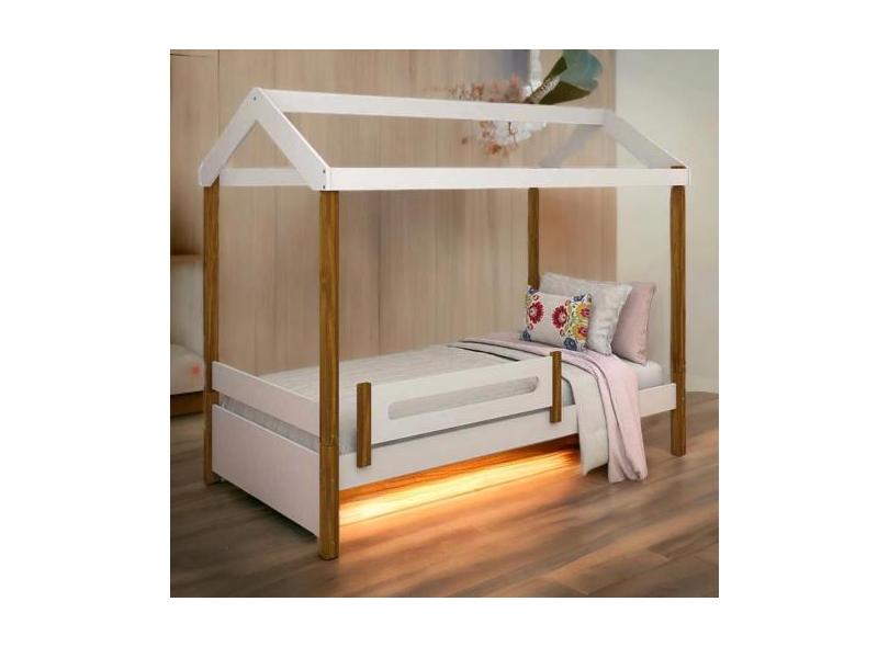 Cama Casa Elisa Com Grade De Proteção Branco/Mel - Movelaria